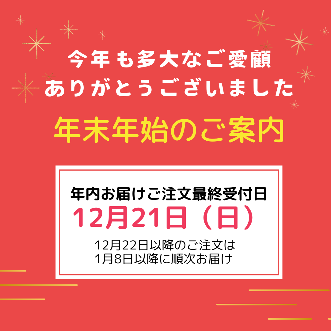 ・12月22日(月)以降のご注文につきましては、1月8日(木)以降順次お届けいたします。